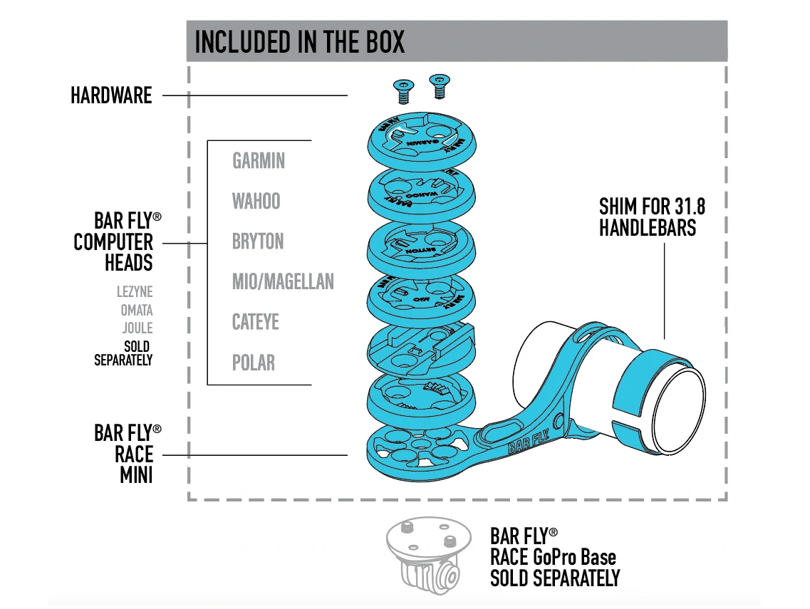 Made for small and standard sized cycling computers, it includes 6 different computer heads to fit most popular brand computers. Clamp fits both 31.8mm and 35.0mm handlebars.