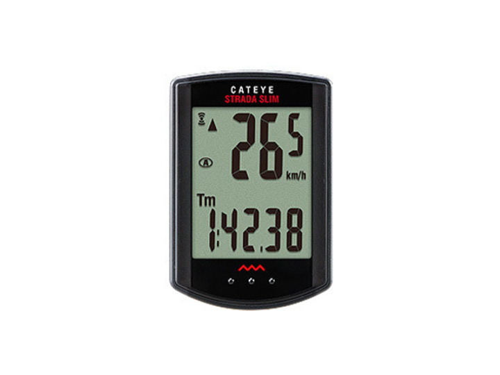 The Strada Slim computer is a ‘slimmed down’ version of the original Strada Wireless computer. Newly designed circuitry and increased efficiency allows for a smaller battery, so the computer can be thinner and lighter. The smaller package still boasts the same great cycling features and functions with a larger screen and the ability to customize your display by showing only the functions you select.