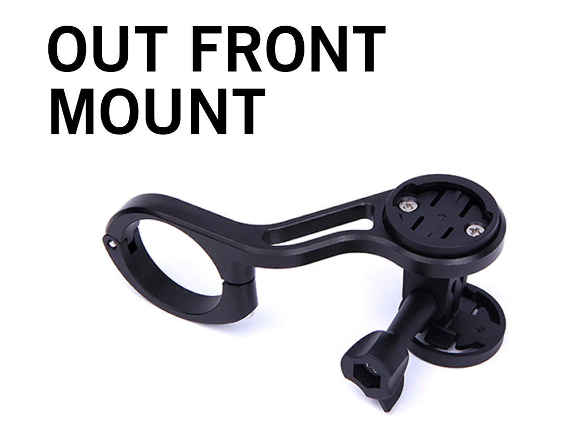 The Dual Out Front Mount includes two rubber spacers to fit different bar widths. And also includes a 3M adhesive quarter-turn mount to attach to the back of a phone case or any other flat surfaced accessory.